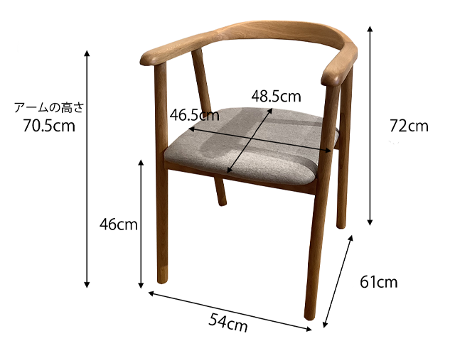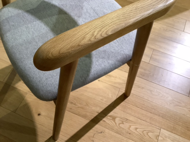 フレームは天然木オーク材無垢を使用しているため、アームや背もたれには