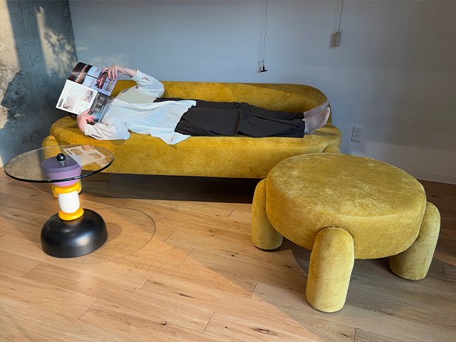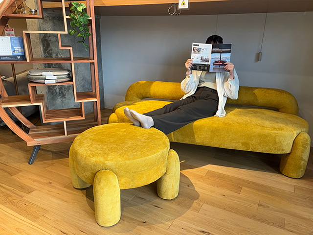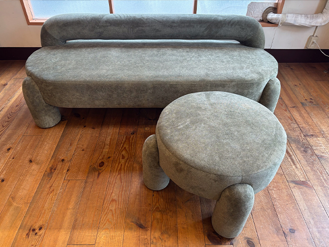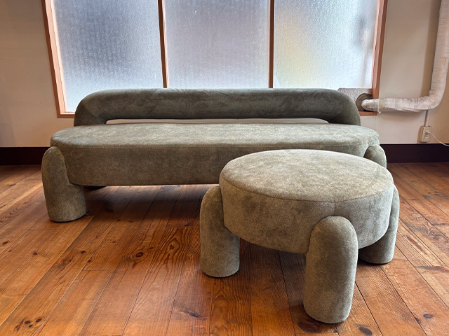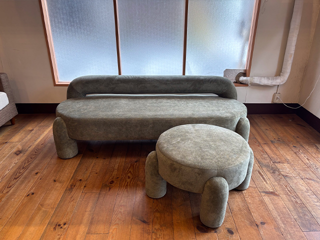 ソファー本体でも十分インパクトはありますが、スツールとセットすることにより更に世界観が広がります。