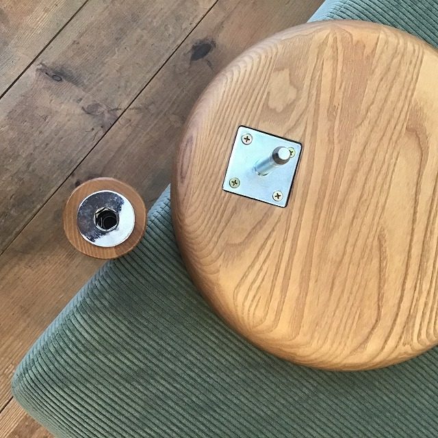 構造は天板裏面にある突起物を脚先に押し込んで固定するもので、固定後は360°回転させることができます。
