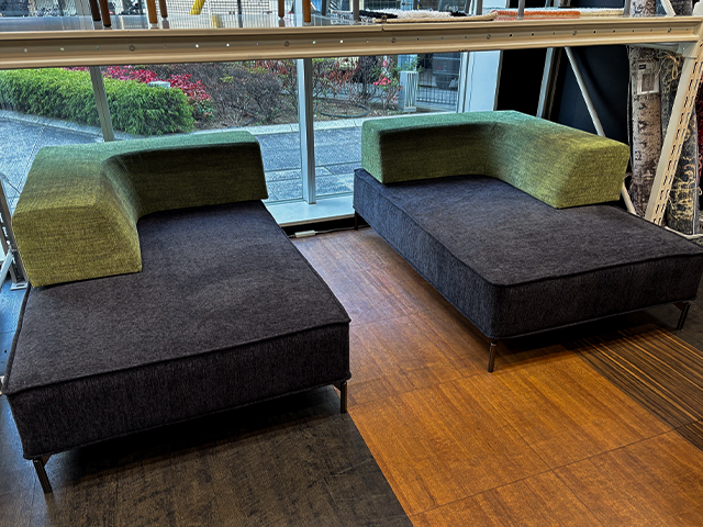 タテとヨコに配置したソファー同士を離して、2つの独立したカウチです。