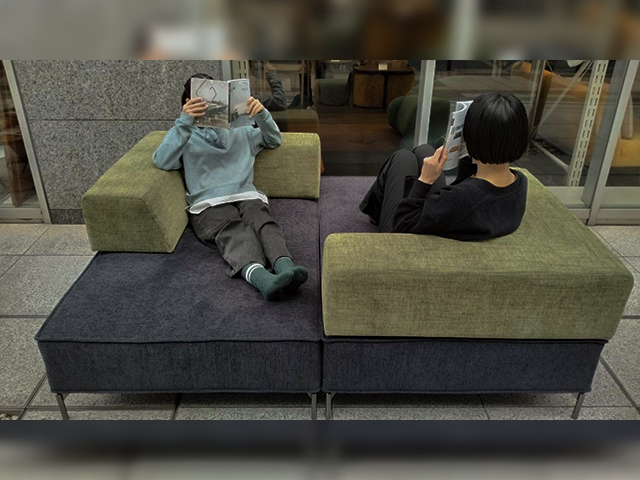 タテに並んだシートを離して2つのカウチとしての使用です。