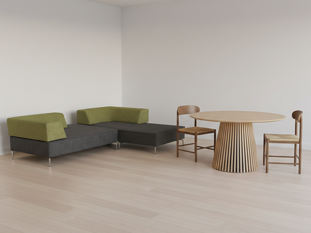 シートと背もたれのカラーを変えてコントラストを付ける事により、レイアウト変更時の表情の違いをお楽しみいただけるようになっています。