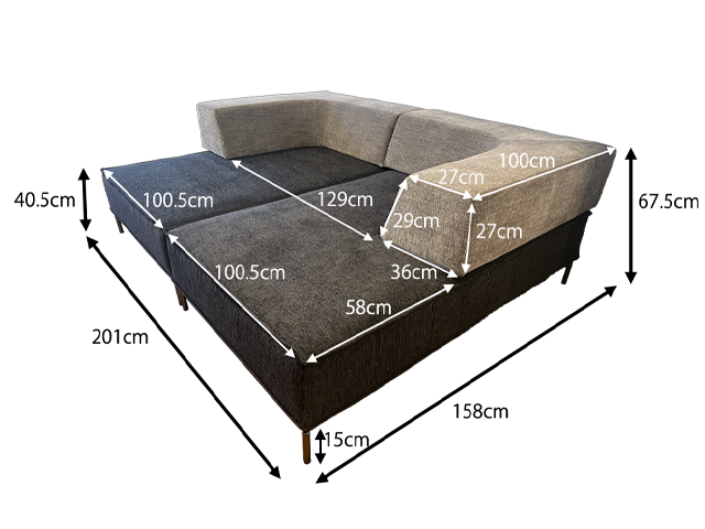 シートを縦方向に並べてダブルカウチです。