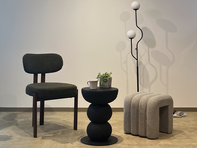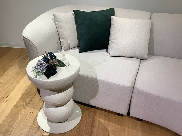 球体を連ねたオブジェのようなローテーブル、その雰囲気、素材感、是非NOCE各店にてお確かめいただければと思います。