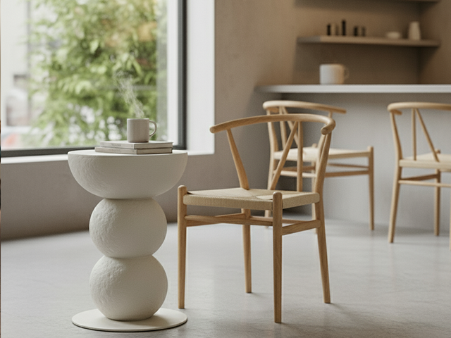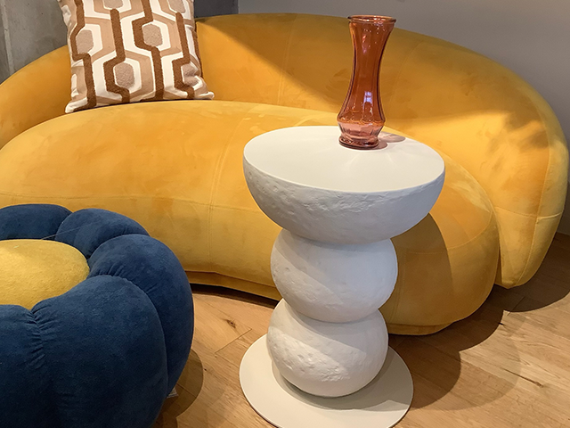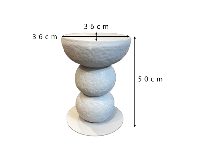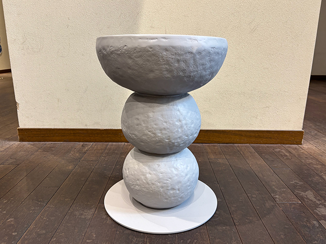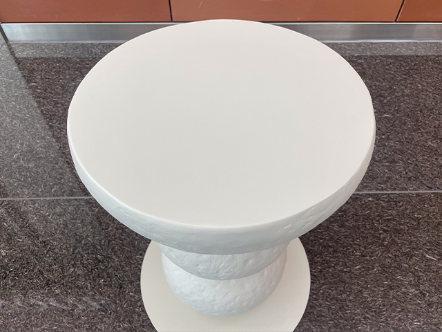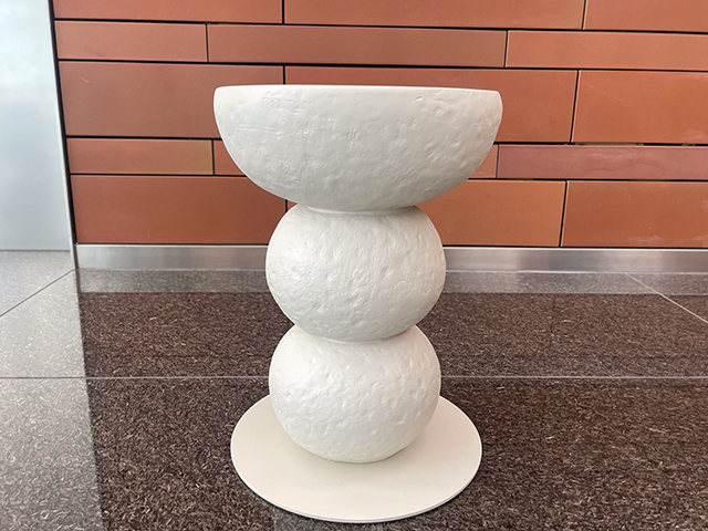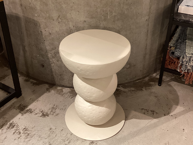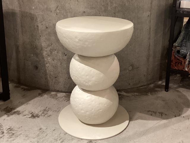 ローテーブルと言ってもオブジェ色が濃く、石膏で作った彫刻のようでもあり、ろくろを回して作成した陶器作品のようでもあり、またフラワースタンドのようでもあります。