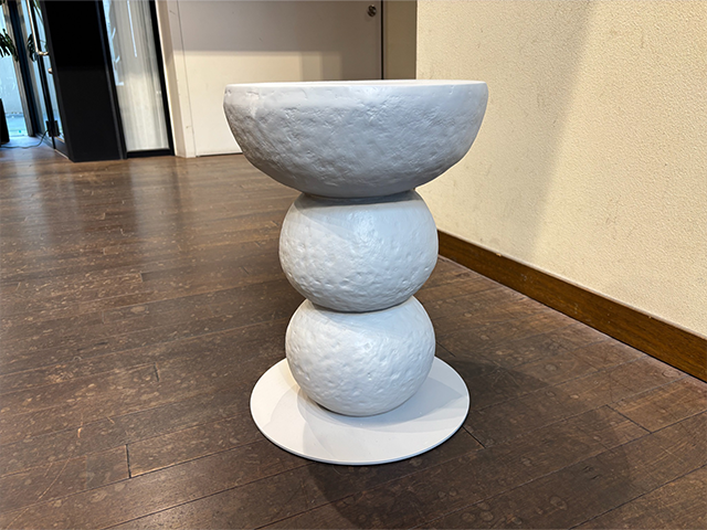 ローテーブルと言ってもオブジェ色が濃く、石膏で作った彫刻のようでもあり、ろくろを回して作成した陶器作品のようでもあり、またフラワースタンドのようでもあります。