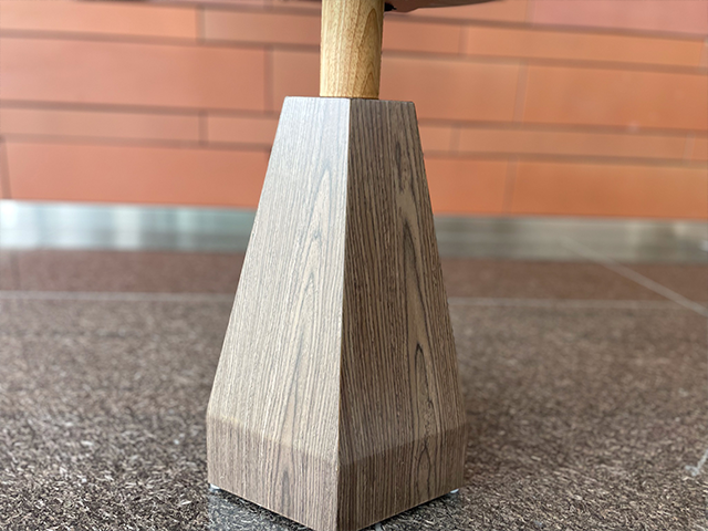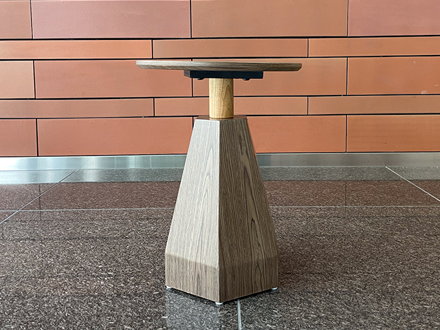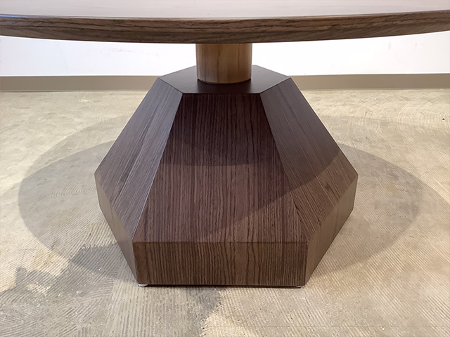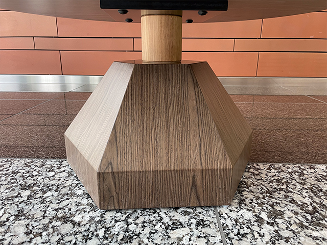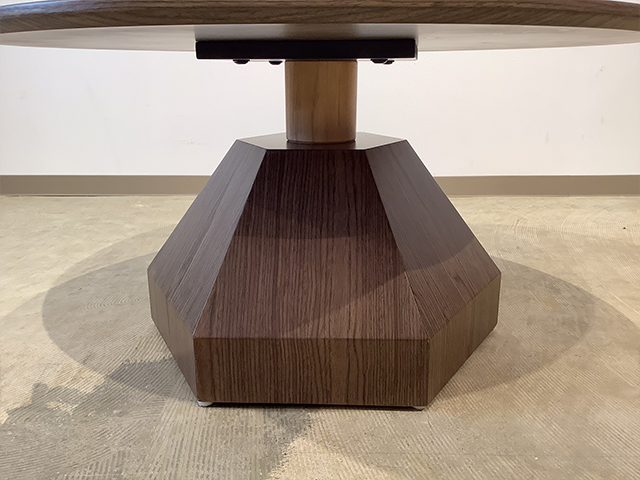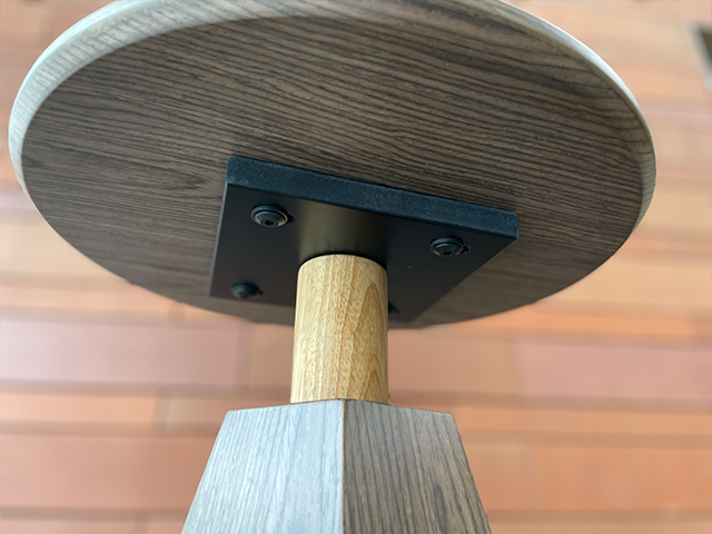 このステム部分がナチュラルステインの木製で、天板と脚のウォルナット塗装とコントラストを形成しています。