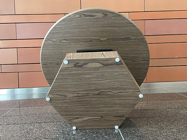 天板は六角錐の脚にステムによって支えられる構造になっています。