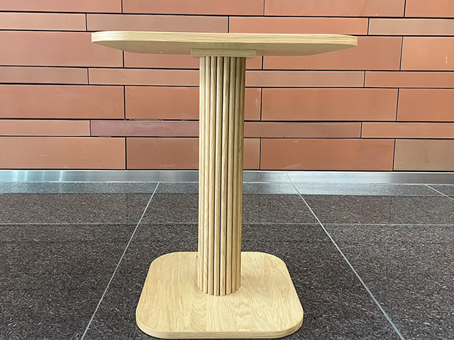 サイズの小さいオーク天然木の北欧デザインカフェテーブル、その雰囲気、縦格子の脚のデザイン、使い勝手、サイズ感、是非NOCE各店にてお確かめいただければと思います。