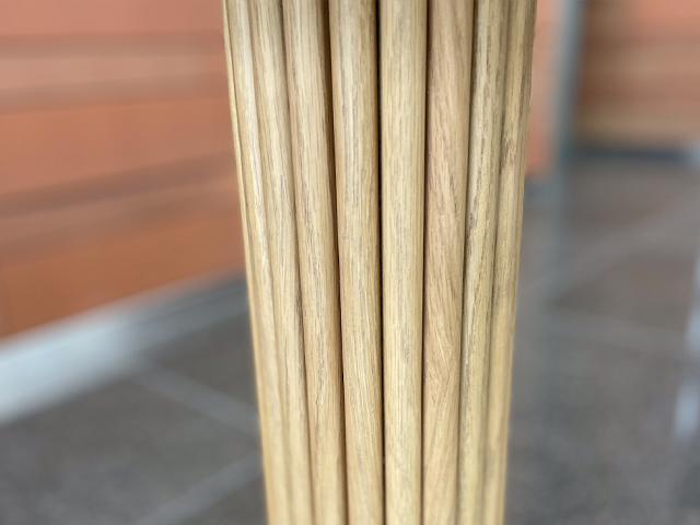 円筒形の細い棒を束ねたように見えますが、実際は半円形のものをベースの支柱に張り付けた構造です。