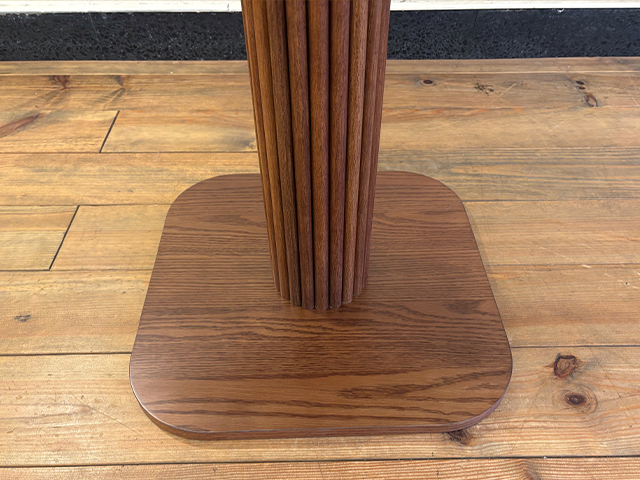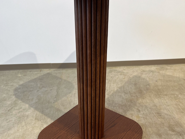 このテーブルの最も象徴的デザインが縦格子パターンの1本脚です。