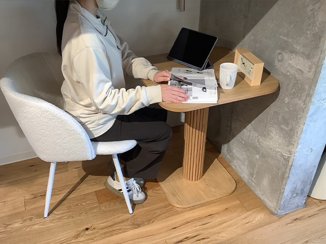 テーブル天板の4つの角は丸く加工され、柔らかいイメージを持つだけではなく、身体にも優しい構造になっています。