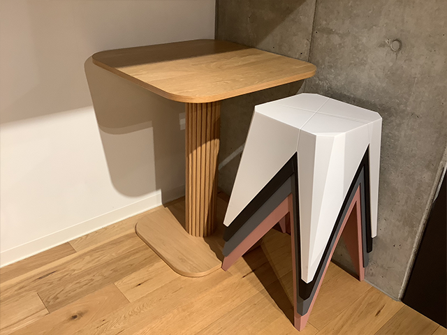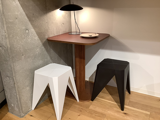 因みにこのスツールはスタッキングできるため、使用後や使用しないとき重ねて置けば、さらに省スペースになります。