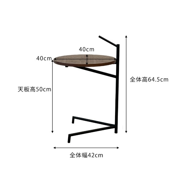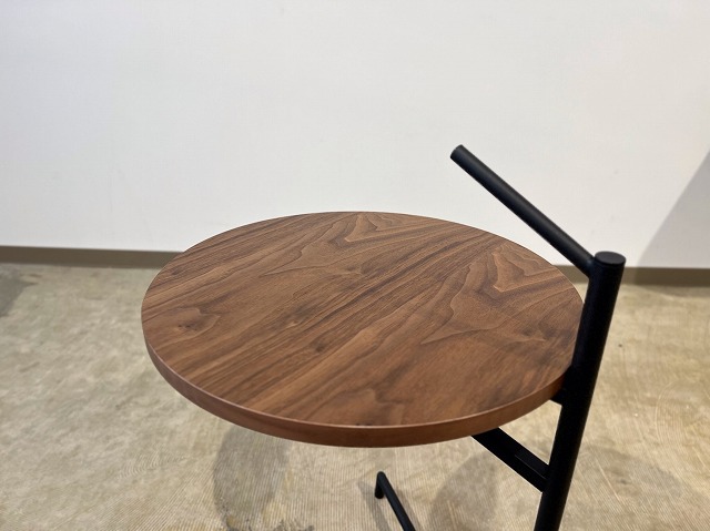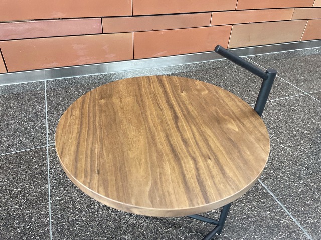 円形の天板は、ウォルナット天然木突板になっています。