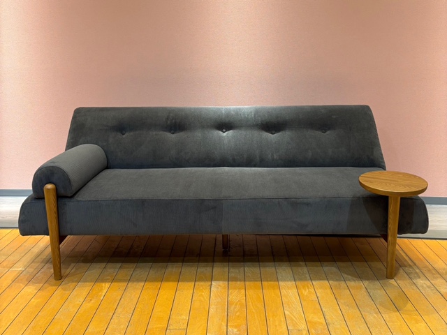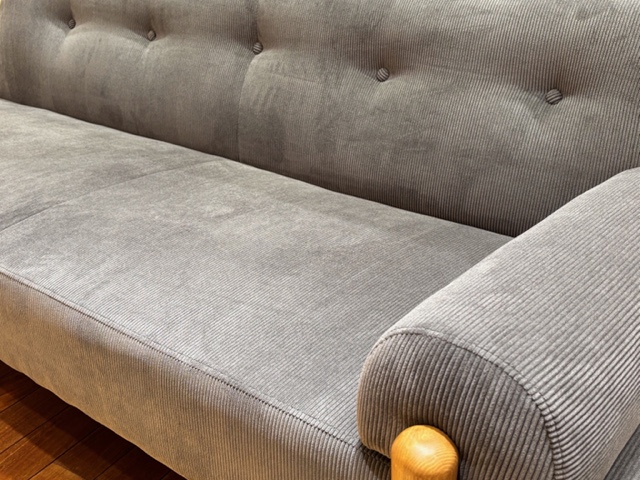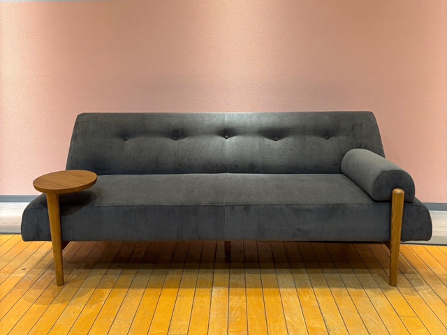 【新商品ソファのご紹介】コーデュロイ×天然木、おしゃれで機能的なテーブル付アームレスソファ