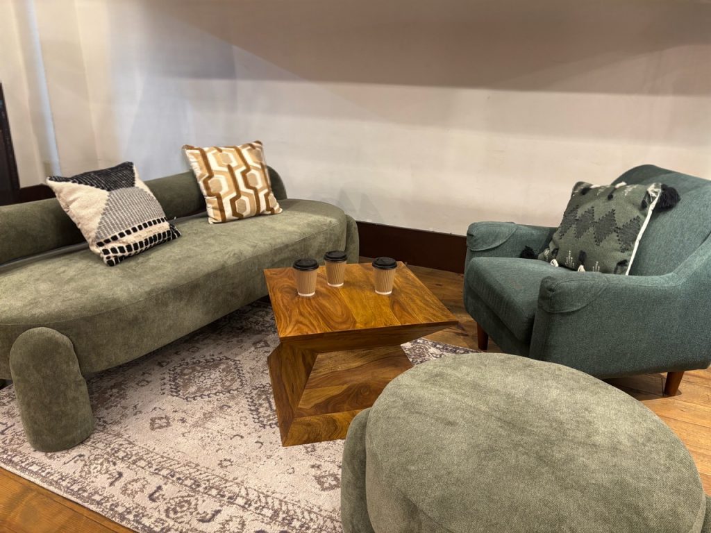 また、高密度のウレタンを使用した座面の座り心地は、程よい硬さで一日中ソファで過ごしても快適です。