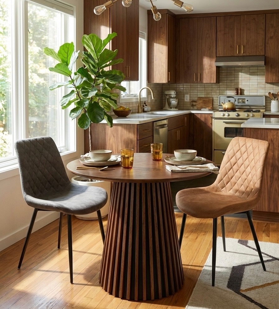 木製チェアと相性が良いだけでなく、様々な素材の家具と合わせても木の温もりが感じられる空間にできます。