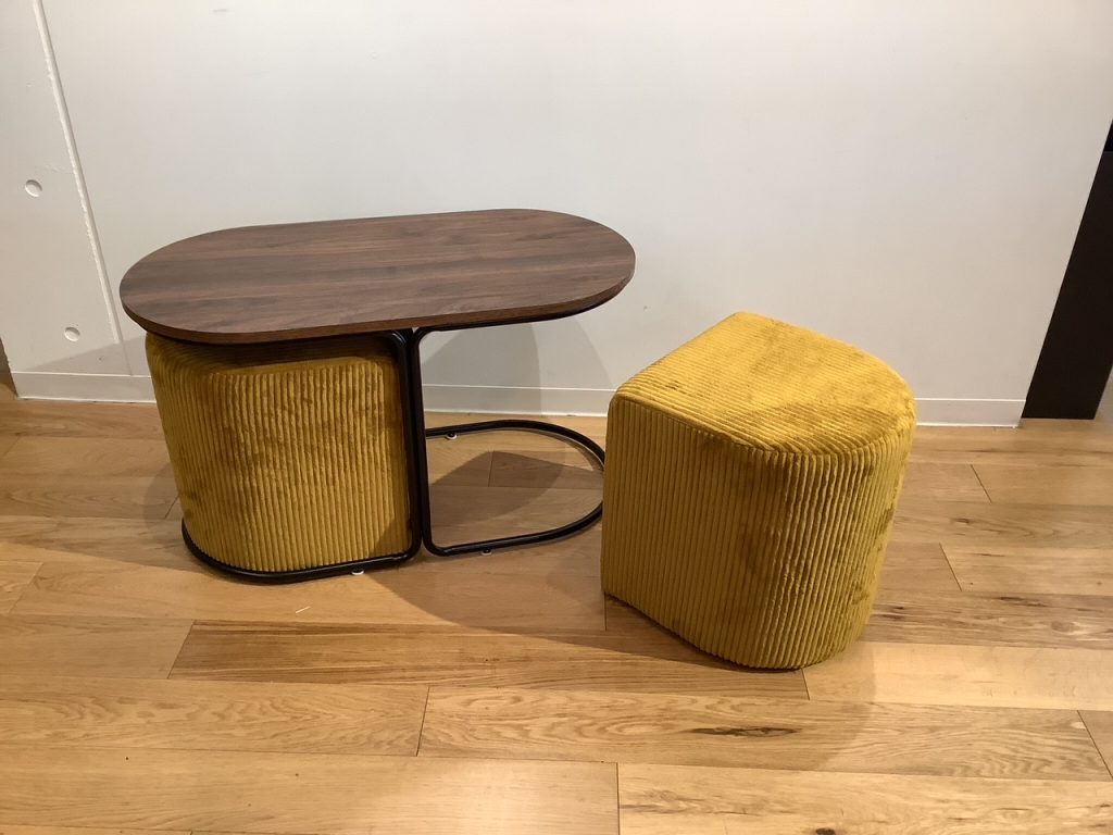 お部屋のスペースを有効に活用しながら使用できる便利なスツールセットのローテーブル