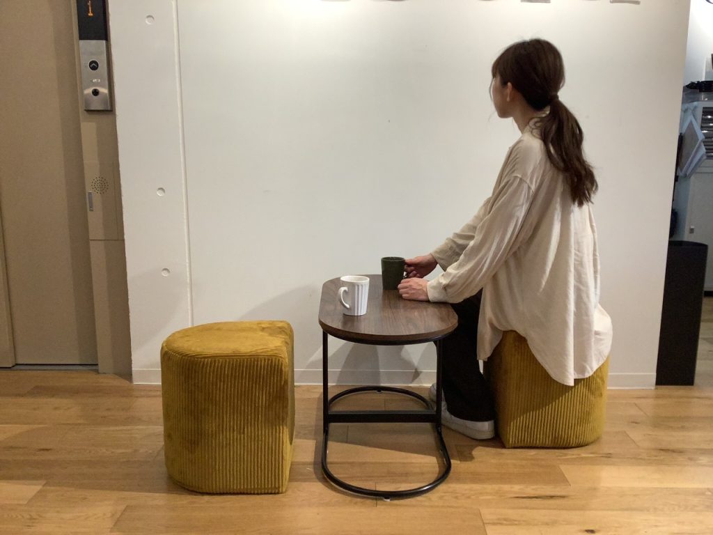 スツールの生地はコーデュロイを使用しておりカジュアルさもありつつ