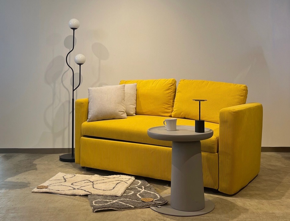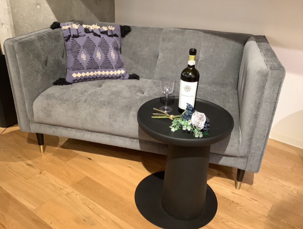 底の部分が薄く平らになっているため、ソファの横にはめ込むことができ、スッキリと置いていただけます。