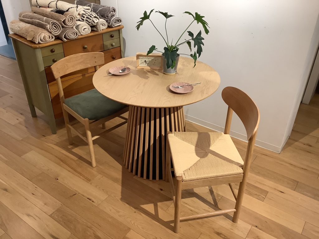 天然木を使ったテーブルと組み合わせをすると作りこまれた空間に仕上げることができます。