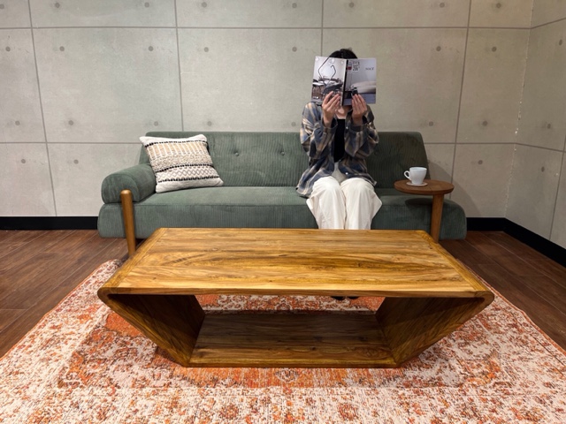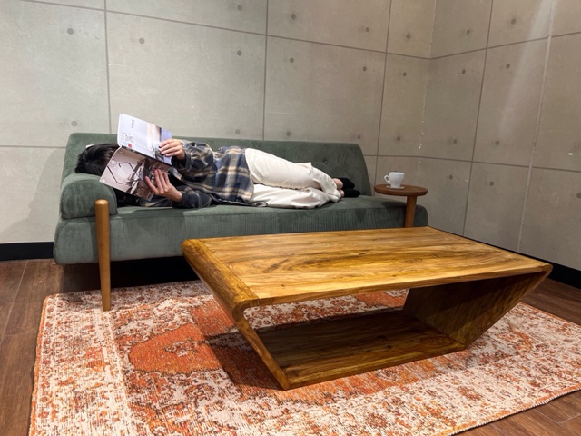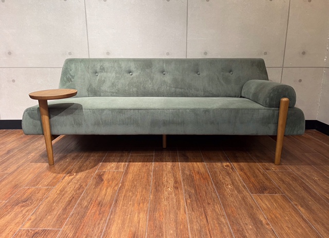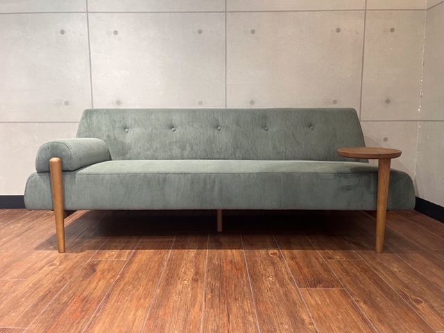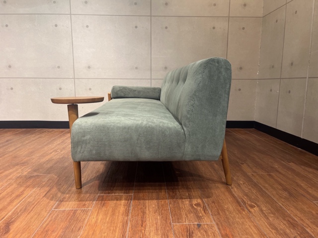 【新商品ソファのご紹介】くるくる回るちいさなテーブル付きのコーデュロイ生地使用ソファ