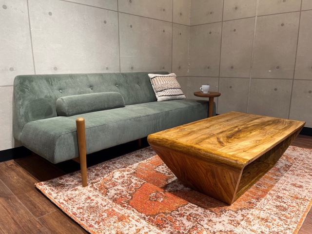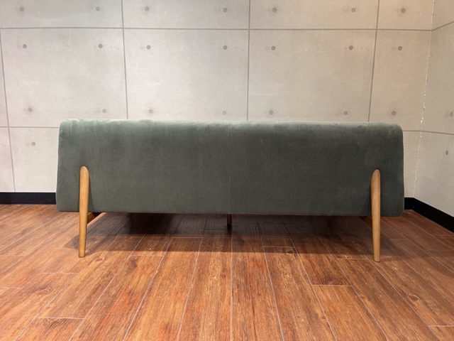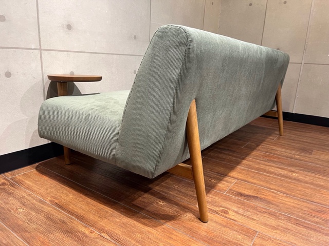 コーデュロイ生地と木製脚の組み合わせでほっこりとしたあたたかみある印象のソファです。