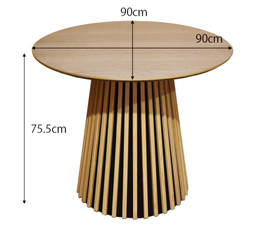 デザインはそのまま!限られたスペースにも適した直径90㎝ダイニングテーブルです。付属の六角レンチで脚部を取り付けるだけの組立簡単なところも魅力的。一人暮らしや女性の方にも安心してご購入いただけます。