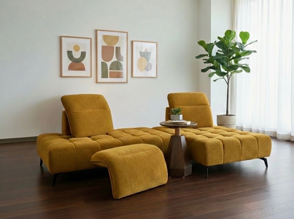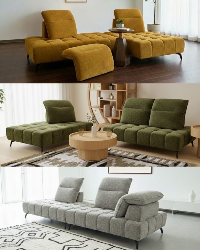 自由にお組み替えいただける優れもので、L字だけでなく、一つのロングソファのソファとしても使用可能です。