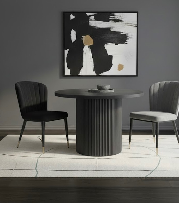ホワイトとブラックの艶を抑えたモノトーンカラーは、空間を選ばずテーブルを主役にしたインテリアを演出します。