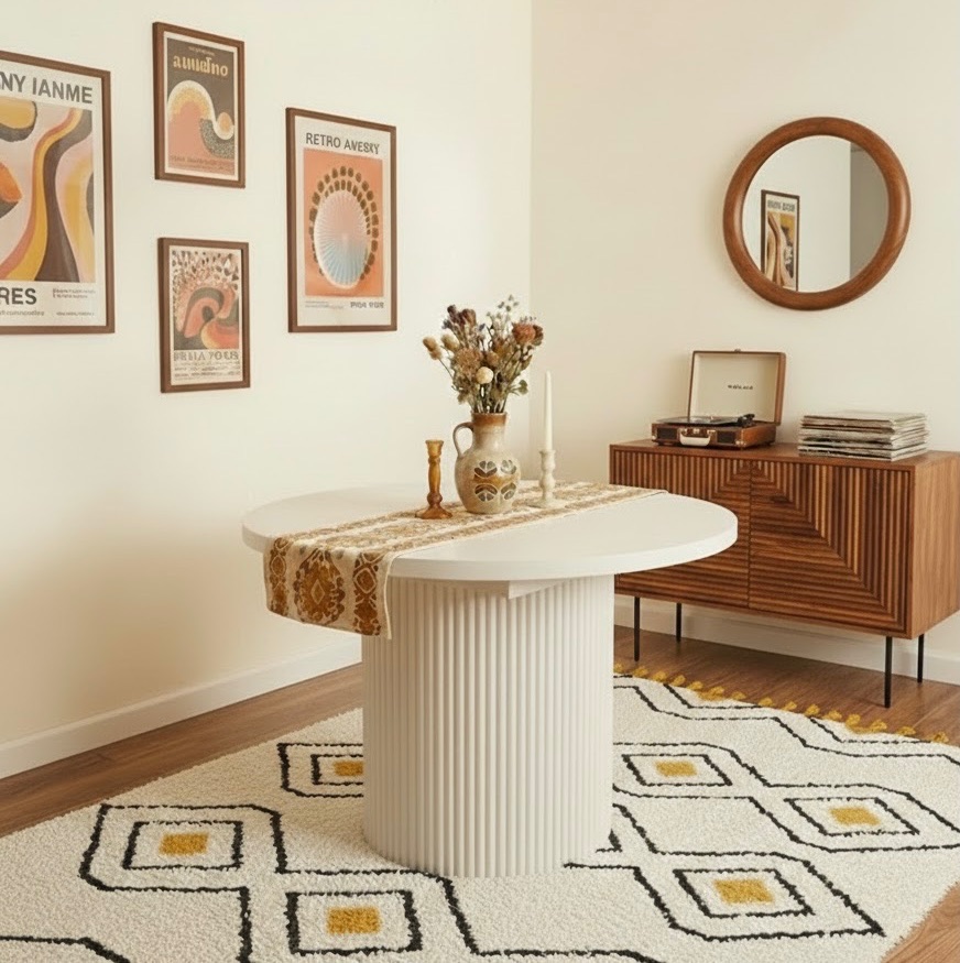縦格子の円柱脚が映える北欧伸長式テーブルが新たに登場しました。