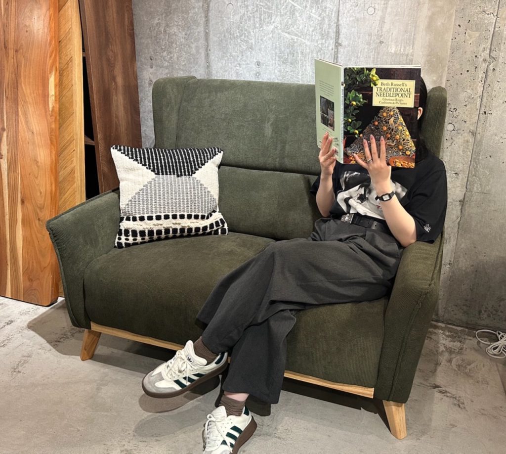 コーデュロイを使用していて、体に触れると優しいタッチで、座面と背もたれは、程よい硬さもポイントです。