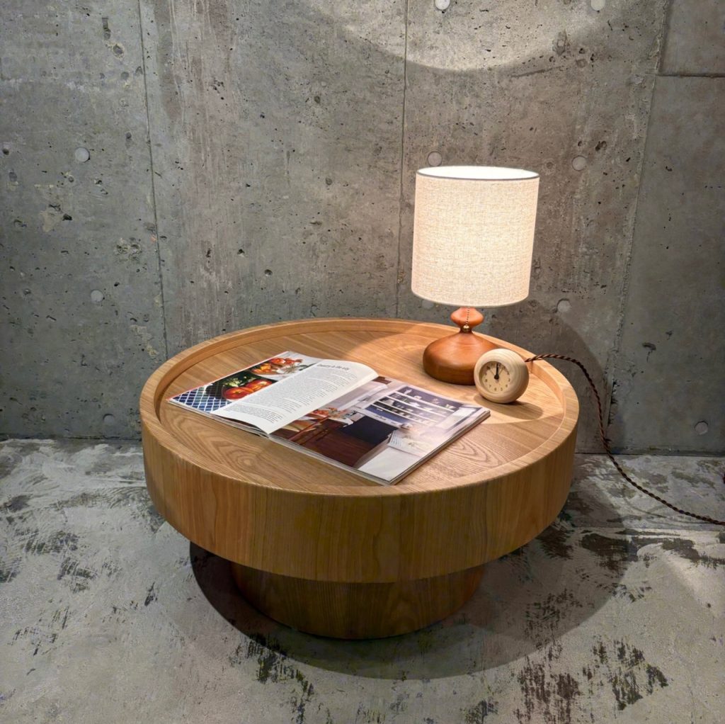 筒状のシンプルなデザインが取り入れやすいローテーブルです。