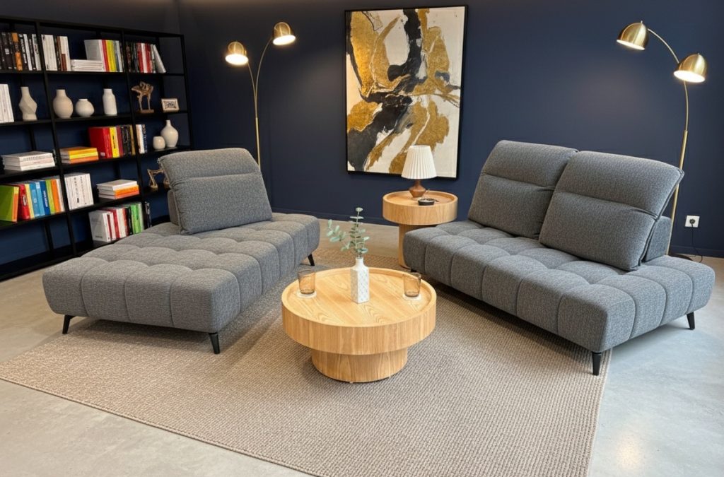 カウチソファタイプとしての設置を設定しておりますが、2台を分割して向き合う様に配置してお使い頂くことも、2台とも縦置きにして、2人並んで足を伸ばしてご使用頂くことも出来ます。