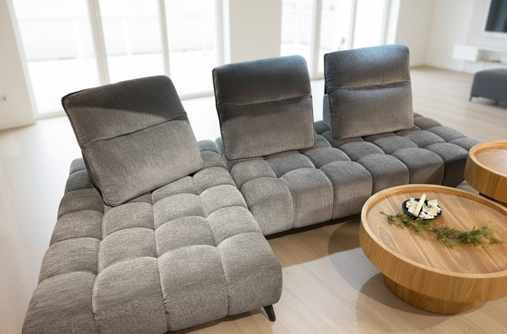 背もたれが自由に動かせる為、浅め〜深くゆっくりと寛ぎスタイルにも対応できるソファとなります。更に、8段階に角度調整可能です。