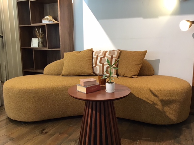 曲線のカーブが美しく、まるでホテルのラウンジにあるようなお洒落なソファです。