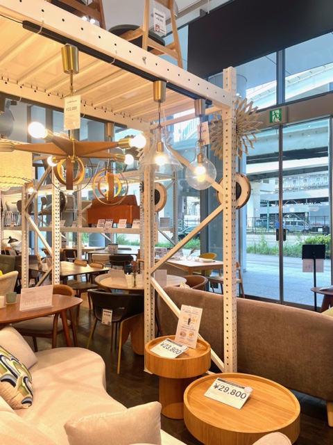 当店は高い天井を活かした3段積みの展示ラックが特徴で、関東の店舗の中でも展示数が豊富な店舗です。2段目の商品や3段目のチェアももちろん実際にお試しいただけますので、お気軽にスタッフまでお申し出ください。