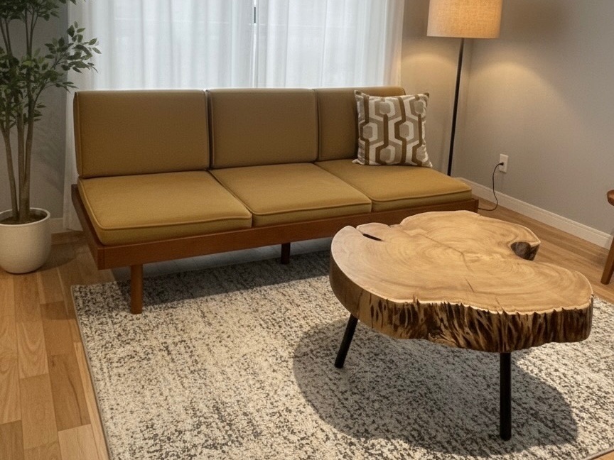 アカシア天然木の形をそのまま活かした重厚感のあるコーヒーテーブルです。