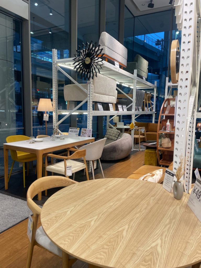 ラック2段目の商品や3段目のチェアももちろん実際にお試しいただけますので、お気軽にスタッフへお声がけください。